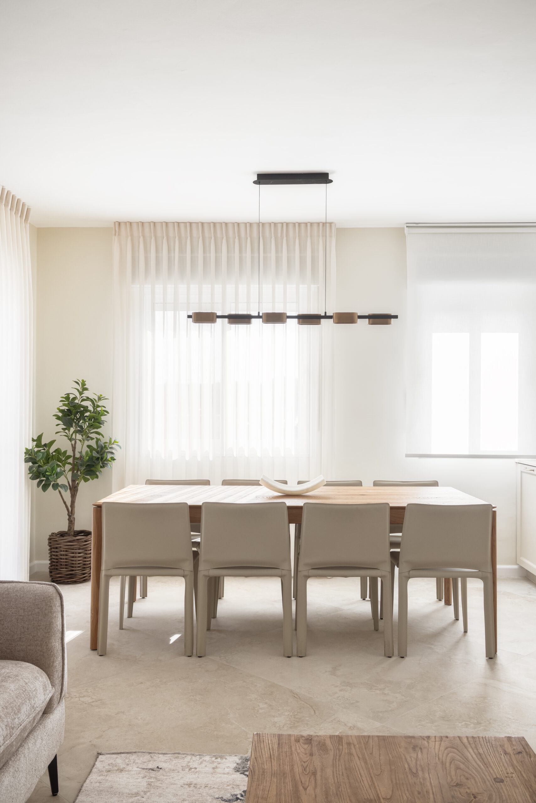 Inbal Karper עיצוב שנולד משיתוף פעולה הפרויקט של ענבל קרפר מציג עיצוב רגוע ומאוזן עם שילוב מדויק בין חומרים טבעיים לגוונים רכים. טפט טקסטורה עדין בגוון אפור חמים יוצר רקע שקט שמדגיש את פריטי הנגרות והעץ. הווילונות הבהירים לצד וילון בגוון ורוד עתיק מוסיפים שכבות של רוך וחמימות ומכניסים עומק עדין לחלל. הבחירה בפלטת צבעים טבעית עם נגיעה רכה יוצרת…