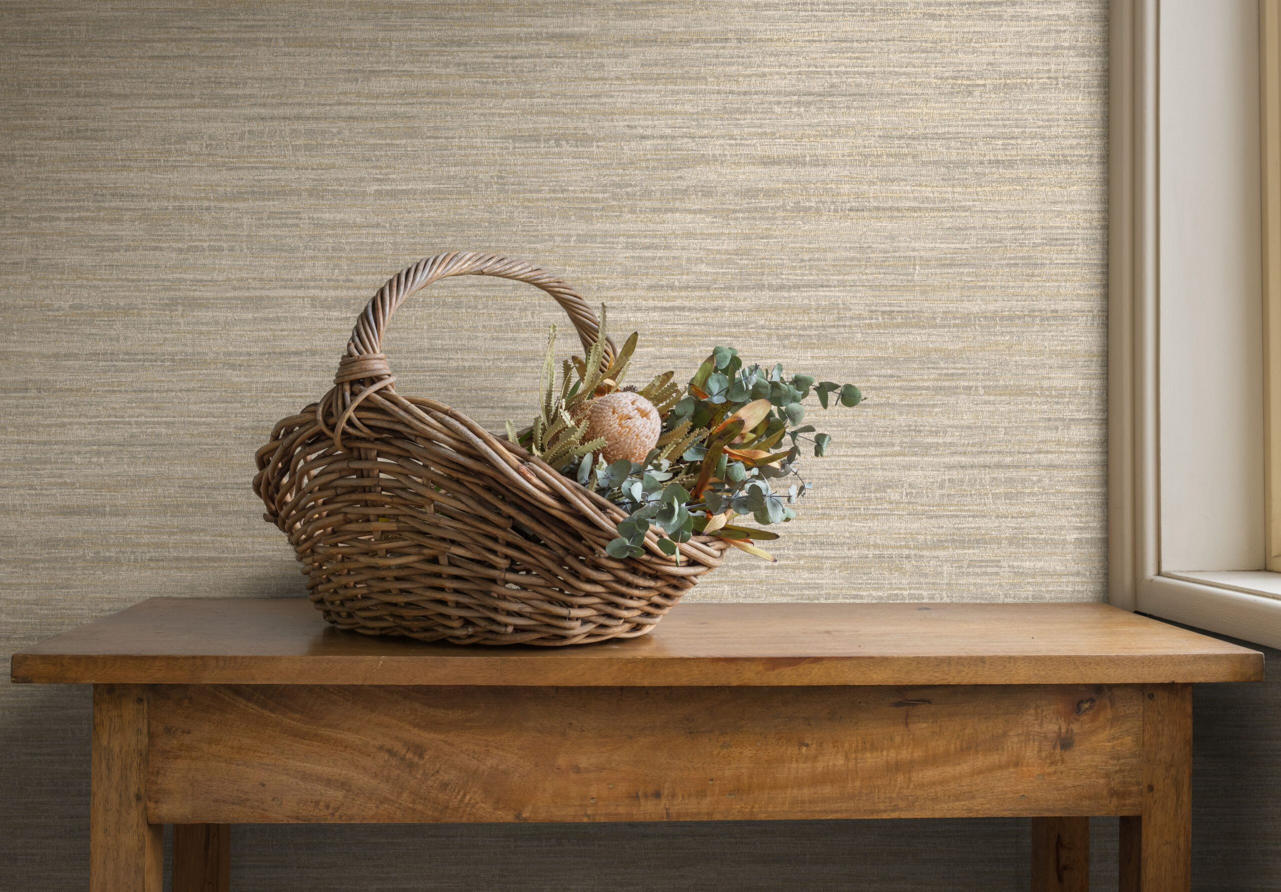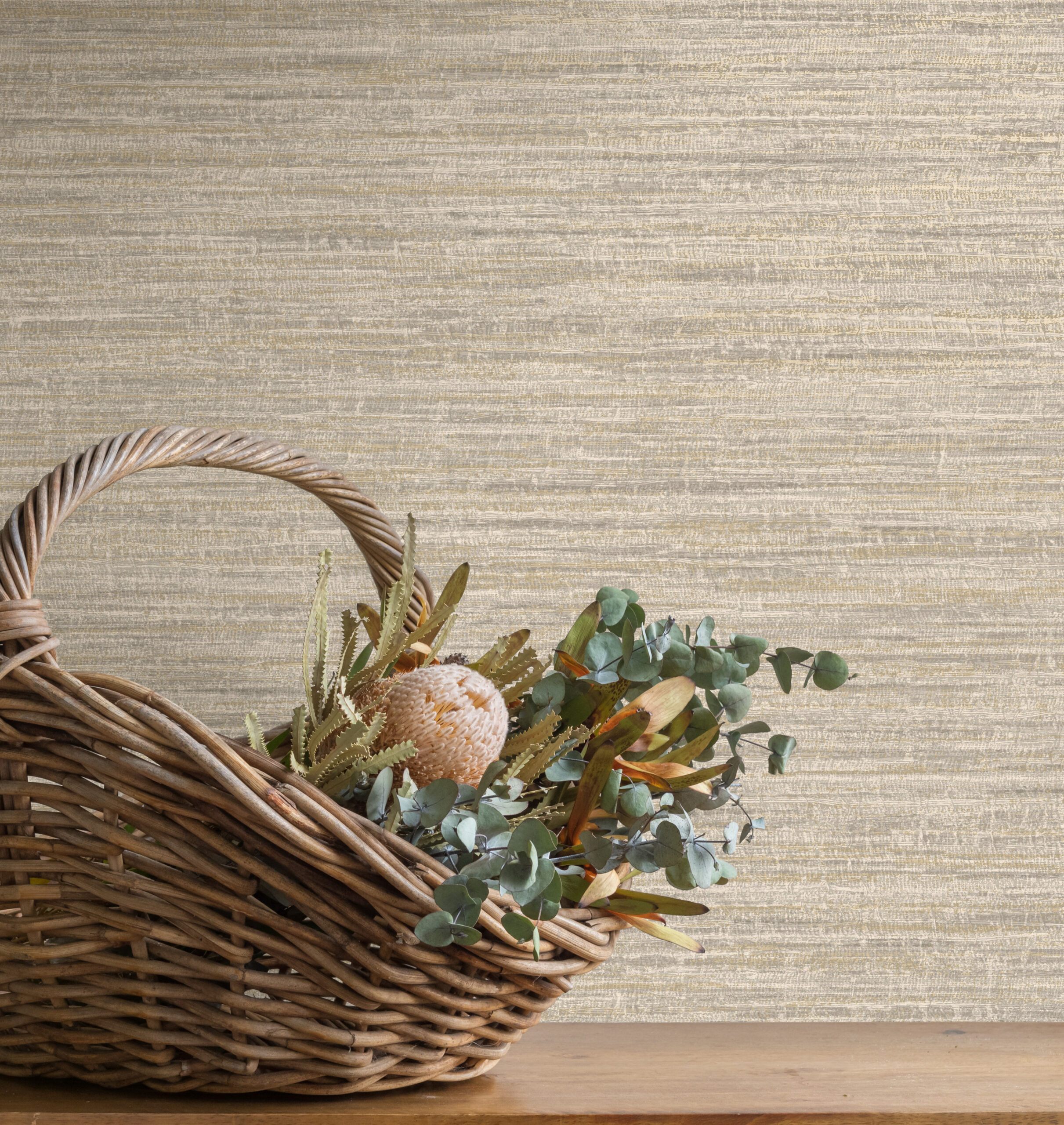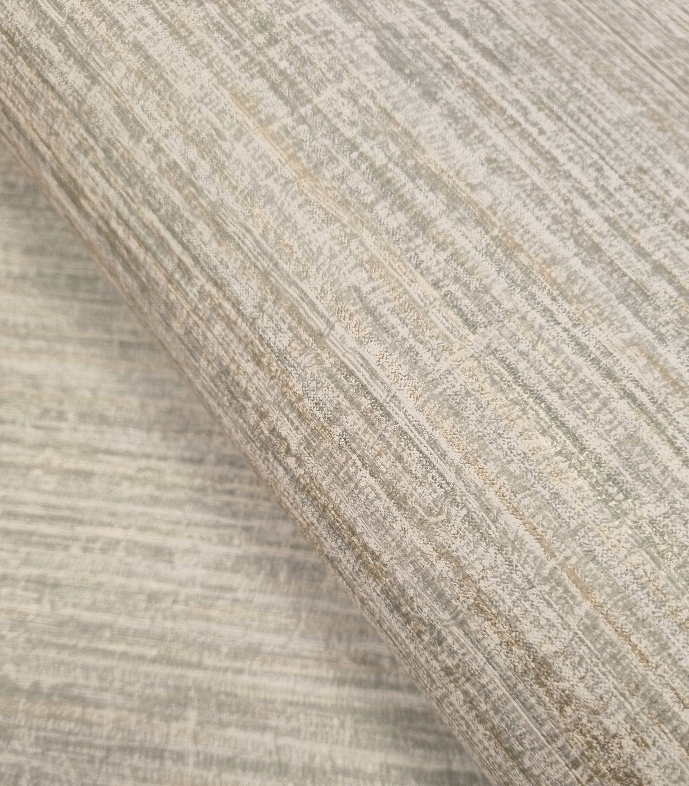 טפט במרקם טקסטיל עדין בגוון אפור רך, עם דוגמה מוברשת שמעניקה תחושת תנועה רכה ושקטה. העיצוב נראה כאילו נארג ביד, עם שינויים עדינים בדוגמה שמוסיפים תחושה של עבודת יד אומנותית. המרקם הטקסטורלי כולל אלמנטים מתכתיים שמשתלבים בעדינות בפני השטח ויוצרים הבזקי אור עדינים עם כל תזוזה. עיצוב מלא רכות ואלגנטיות שמתאים במיוחד לחללים המעוצבים בסגנון מודרני טבעי או קלאסי רגוע. ניתן לנקות את הטפט בקלות בעזרת מטלית לחה או ספוג.