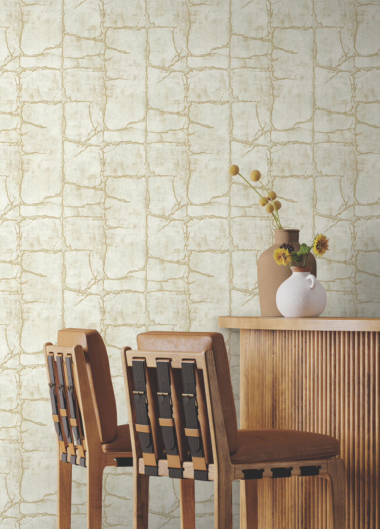 טפט מדברי סדקים בקרקע דחוסה בגווני שנהב ושמנת עם נגיעות זהב