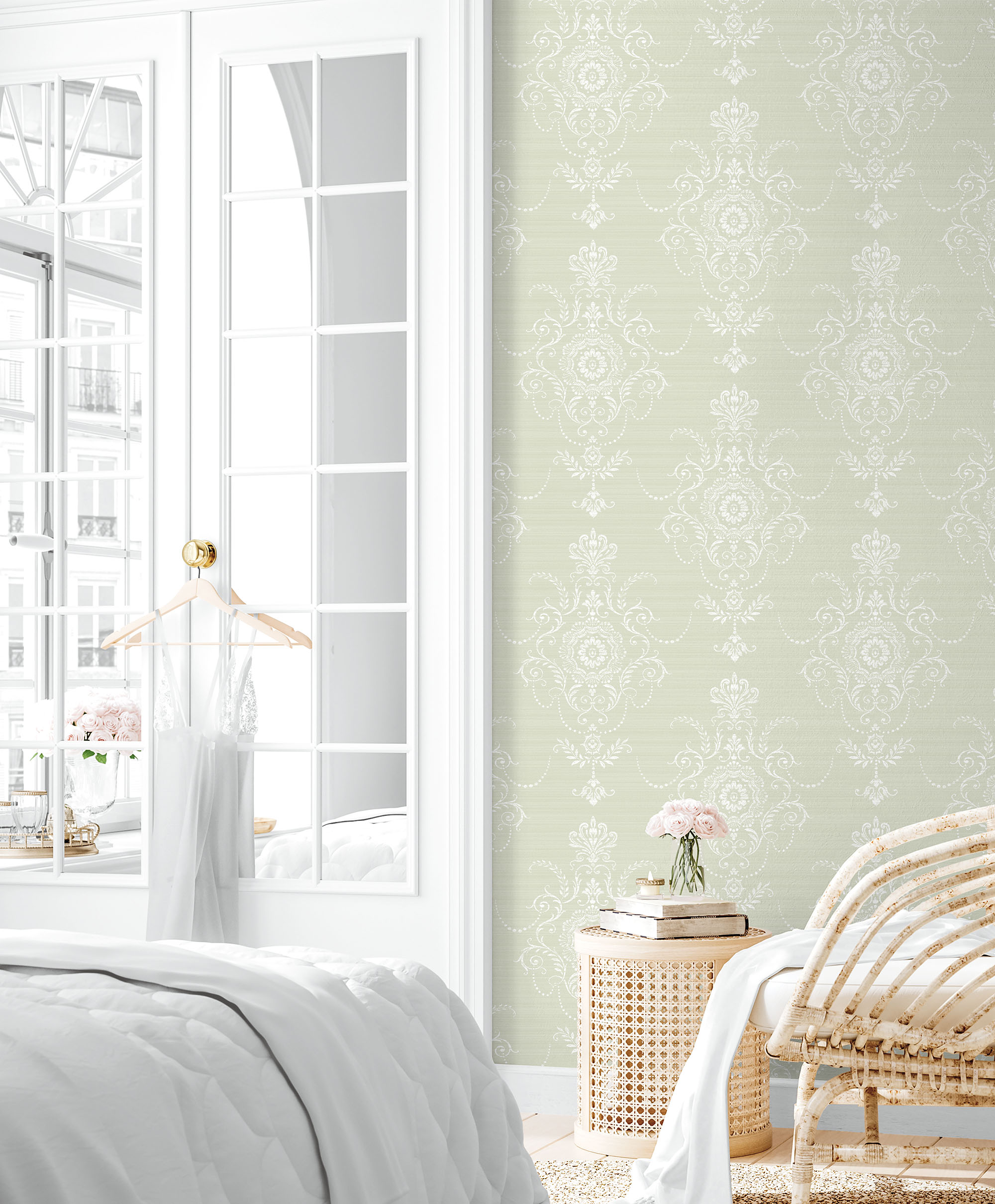 טפט עיטור קלאסי אלגנטי בגווני ירוק מרווה ולבן
